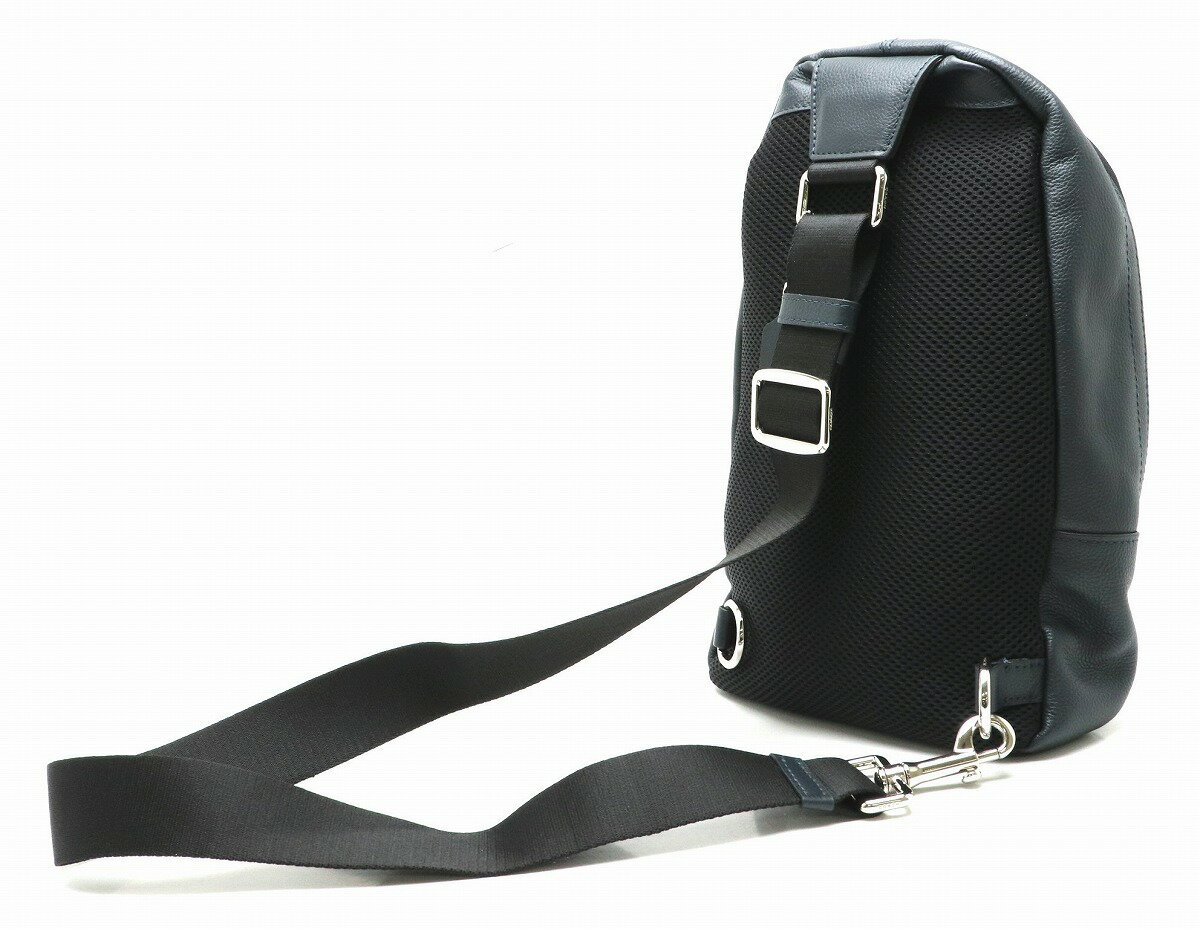 【バッグ】COACH コーチ チャールズ ヴァーシティ シグネチャー スリングパック ボディバッグ PVC レザー ダークネイビー ホワイト ブラック F72353 【中古】