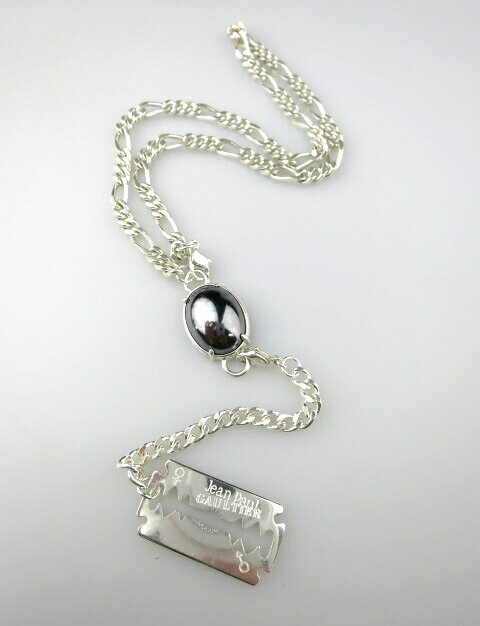■商品説明■ カミソリチャーム付きのヘマタイトストーンネックレスです。