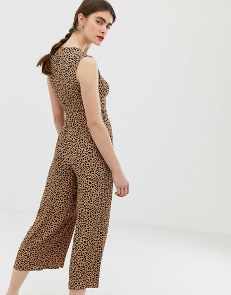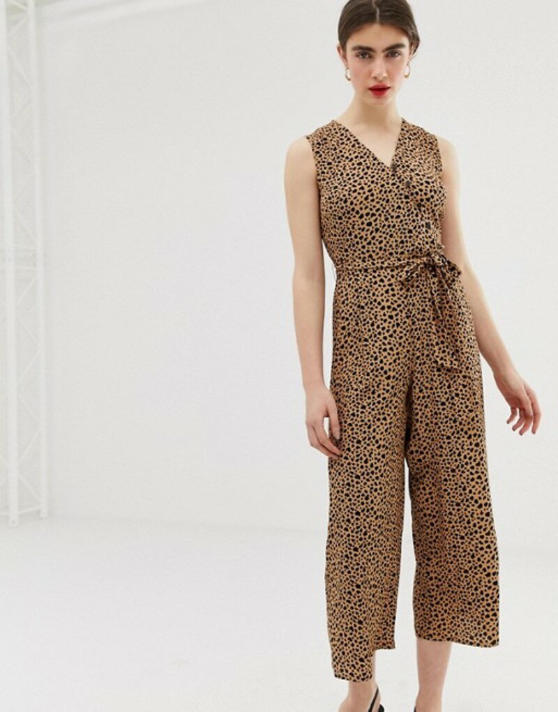 ウエアハウス レディース ワンピース トップス Warehouse cropped jumpsuit with belt in leopard print Tan