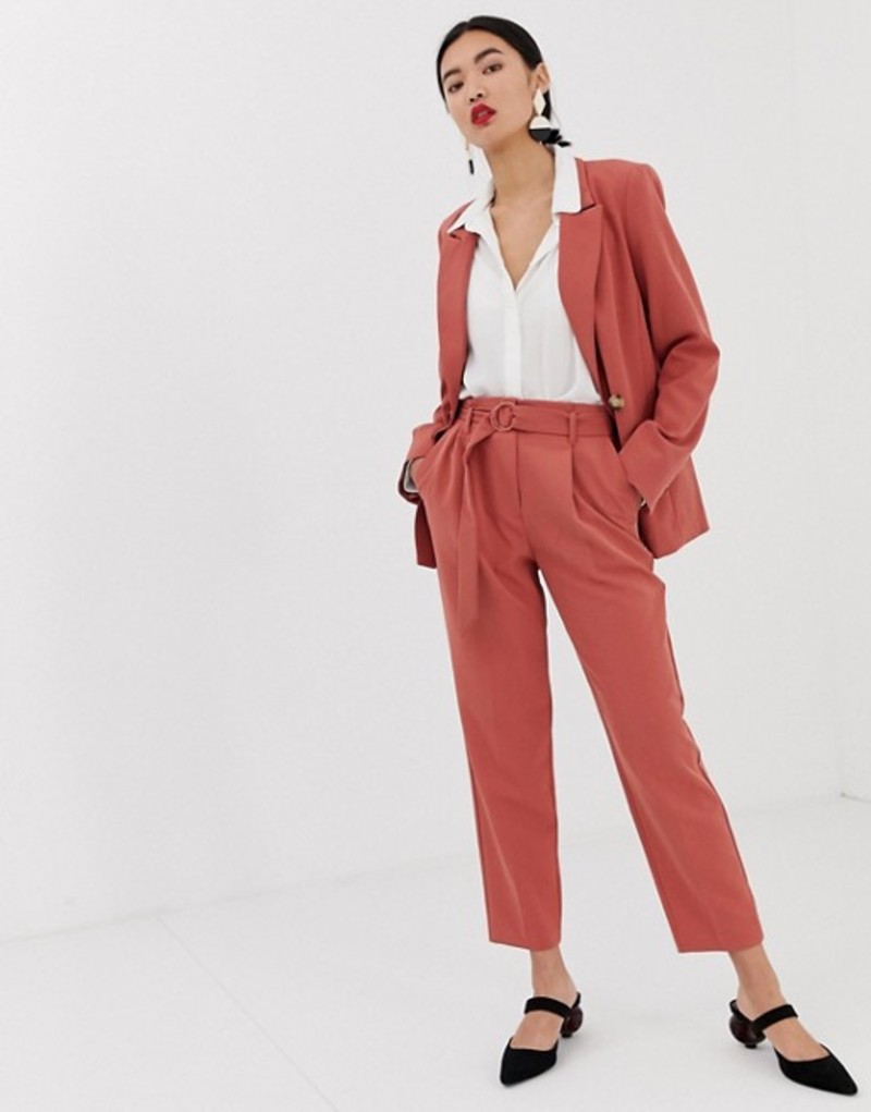 ウエアハウス レディース カジュアルパンツ ボトムス Warehouse tapered pants with o-ring belt in pink Pink