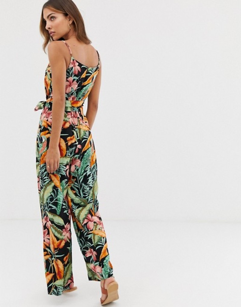 ウエアハウス レディース ワンピース トップス Warehouse cami jumpsuit with belt in tropical print Black
