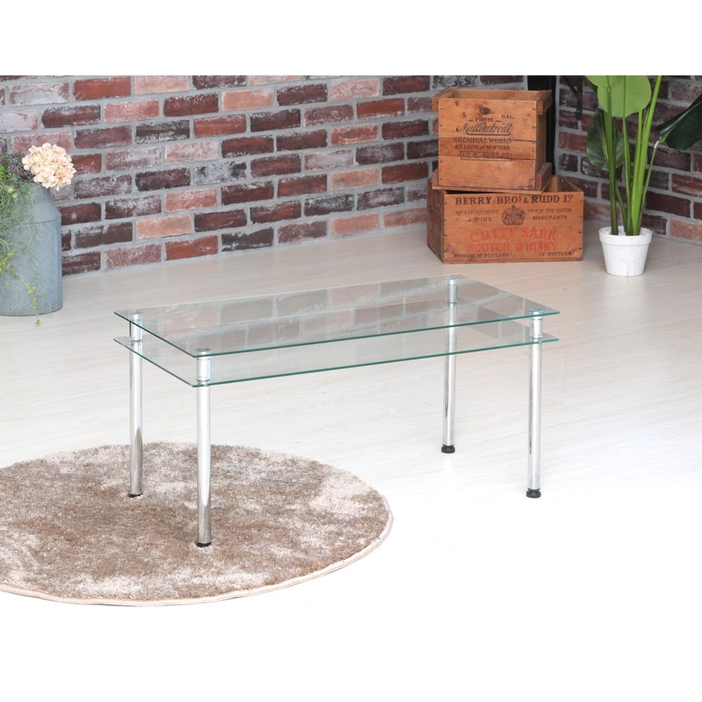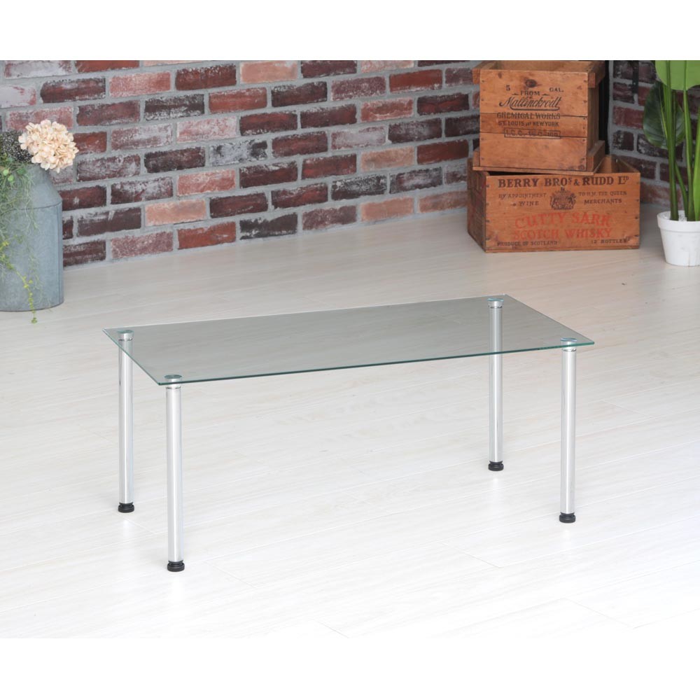 高級感のあるガラス天板と美しいクロームメッキ脚のセンターテーブル。