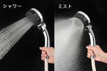 ミスト付きマイクロナノバブルシャワーヘッド 散水ヘッドを回すことで2水流(シャワー水流⇔ミスト水流)の操作を実現。